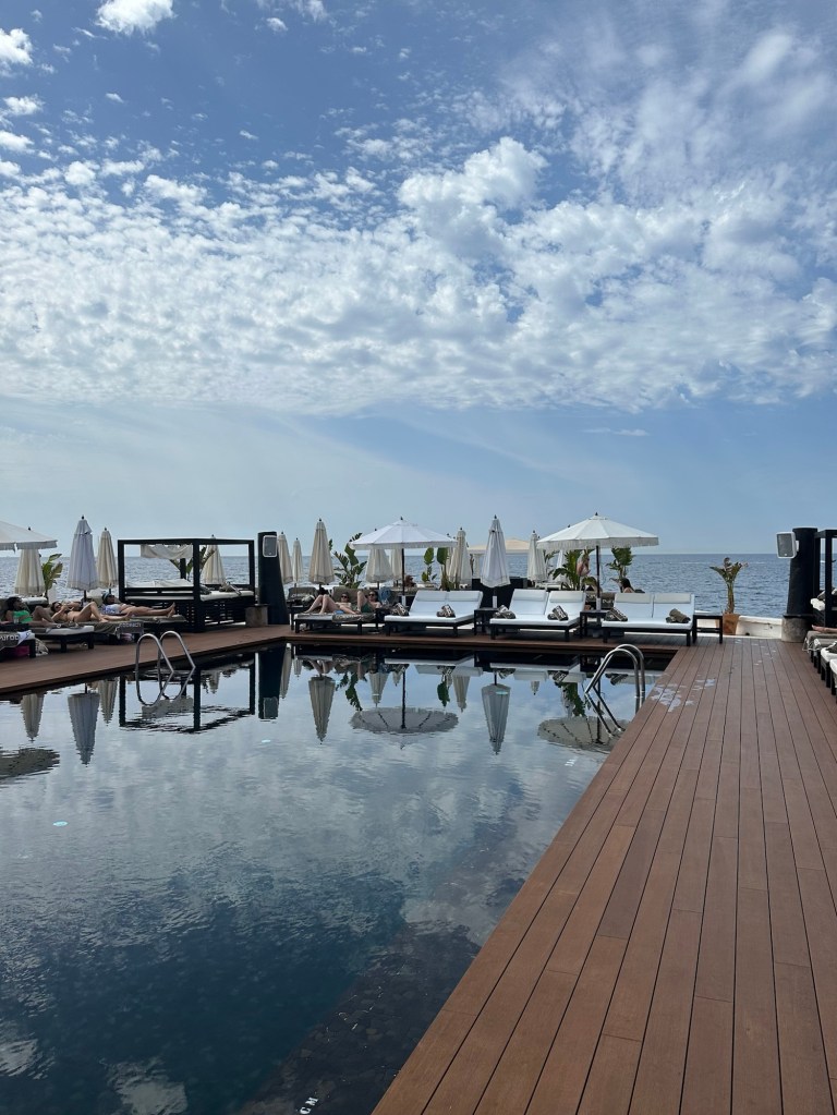 Nikki Beach – Known around the world, Nikki Beach in Mallorca is no different, hosting events almost daily. It’s on the pricier side, but worth it if you get a group bed, which works out well cost-wise. It’s a lively beach club with upbeat music, lots of food and drink options, and they make fresh guacamole in front of you—a no-brainer!