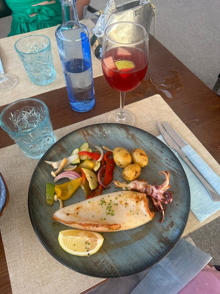 Restaurante Illeta – a stunning waterfront spot located in Camp de Mar, perched on a small islet connected to the mainland by a wooden bridge. The restaurant offers a unique and picturesque setting, surrounded by the crystal-clear waters, you’ve likely seen pictures of it all over social media. The food was delicious, I had fresh grilled squid which I’m always drawn to on a menu, but I tried some of my friends sharing cod rice dish and it was also incredible, I would definitely opt for one of the sharing paella/dry rice dishes if I was to return. We didn’t have a booking, but since they do take walk-ins, we went a bit earlier to secure a table. The only downside is the 1.5-hour time limit on tables, and they do rush you a bit when your time is up, but it’s still worth visiting for the views and the food.